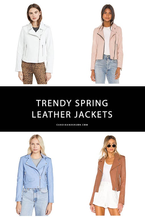 Spring is one of my favorite seasons! The thing I love the most about it is that the weather is cool enough to wear a light jacket in the morning (and evening) and it’s warm enough to wear a short sleeve top or dress during the day. It’s no secret that winter 2021 may just be getting started but that doesn’t mean I don’t have spring fever! One of my favorite transitional items is a great leather jacket! You can pair a trendy leather jacket with a warm sweater in the winter and a lightweight top or dress in the spring! I have two leather jackets that I wear throughout the year in black and in tan. This season I’m coveting trendy blush, white spring inspired leather jackets!