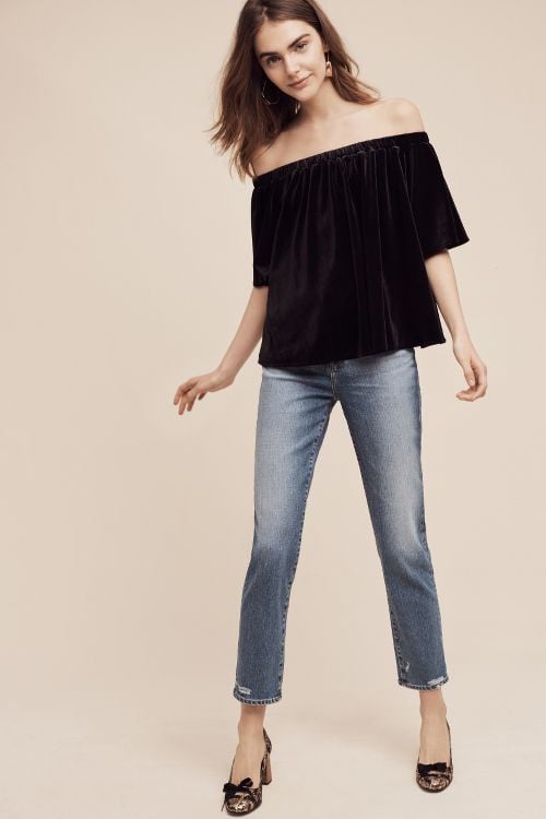 Velvet and off the shoulder tops are two of the hottest holiday trends!