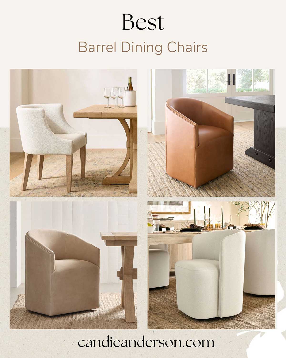 In this post, I’m sharing the 20 best barrel dining chairs for every style—including upholstered, slipcovered, leather, and sleek modern options at a variety of price points. I also included picks that work beautifully in small dining rooms, open-concept spaces, and everyday family dining, plus a few swivel styles that make entertaining feel effortless.
