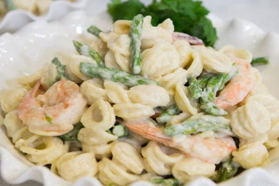 To make the dairy-free shrimp orecchiette alfredo, chef Craig Strong mentioned that you will need shrimp, asparagus, chili flakes, olive oil, salt, raw cashews, water, shallots, garlic, orecchiette. Be sure to watch the video below to see how he made this amazing dish! Don’t forget to head over to the Today show website for the fabulous recipe, so you can make it for your family this evening!
