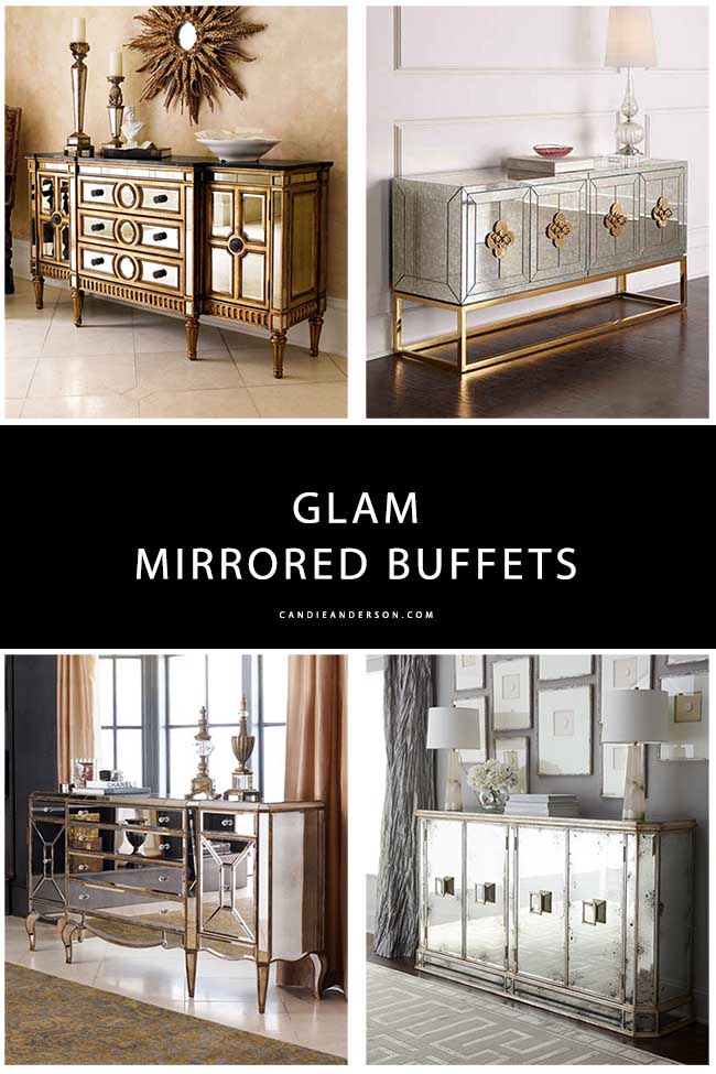 Glamorous and sophisticated mirrored furniture is my latest obsession. I recently purchased two mirrored pieces for my home (in addition to my beautiful upholstered bed and elegant nightstand), and I’m looking to add more mirrored furniture to my home. With the holidays quickly approaching, I’m absolutely LOVING mirrored buffets. They are glamorous, perfect for entertaining, and are destined to garner tons of compliments from family and friends. Not only will beautiful mirrored sideboards (and buffets) look phenomenal adorned with gorgeous holiday decorations and are the perfect spot to place appetizers and desserts (with a trivet of course!) but they offer ample storage space as well.