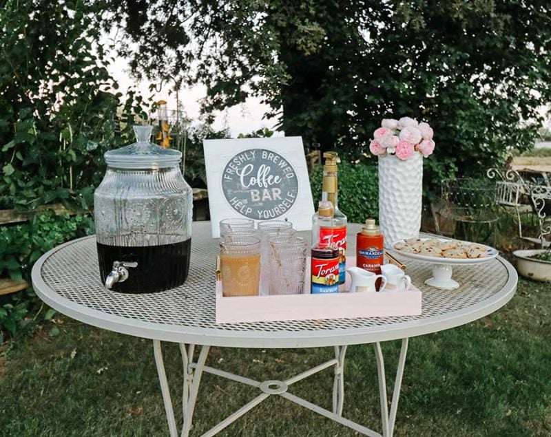 You can create a sign with a chalkboard or any materials you wish, or you can purchase a coffee inspired sign letting your friends, family and guests know where the coffee bar is! Walmart has a great selection of coffee signs that are perfect for the coffee bar at your bridal shower, baby shower, or Sunday brunch. Some can even be personalized! As someone who doesn’t have a common name (Candace), this is a plus. I love that you can hang these signs in your kitchen or in your office as well. They are perfect for the coffee drinker! Since my coffee bar was outside, I made sure and used an easel so I could set it on my table.