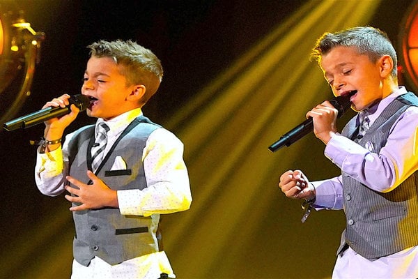 Meet adorable and super talented twin singers, Antonio and Paco of Spain! Tonight they sang a beautiful romantic song in their matching suits! Are they not the cutest ever? I loved their amazing performance on the Little Big Shots stage.